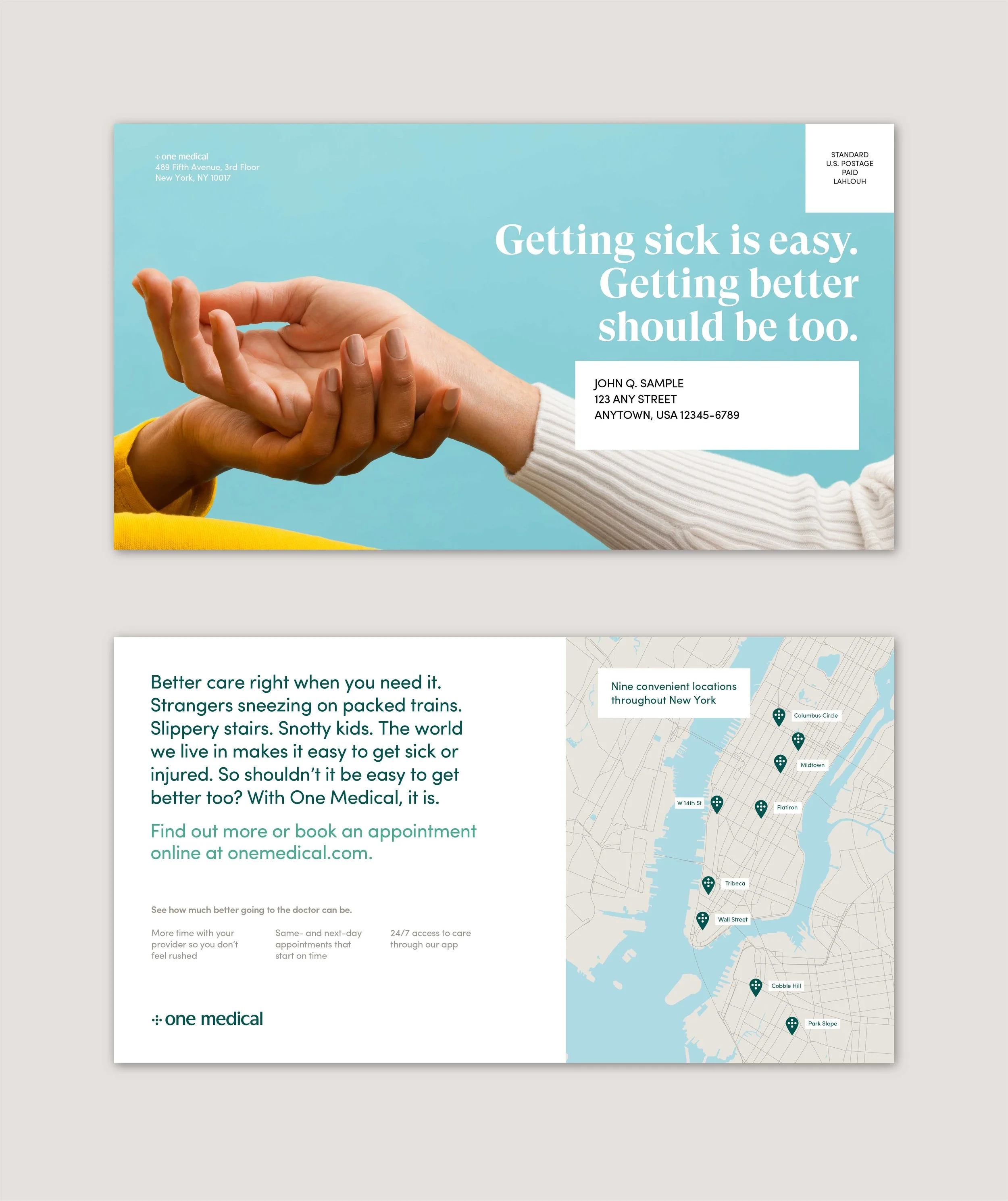 I expanded the new rebranded visual system Moniker created throughout all touchpoints that represent the premium One Medical experience from printed materials, email, and event branding.